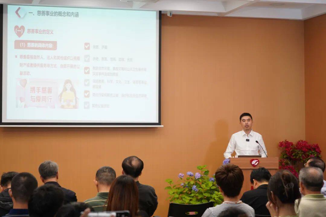 揭牌仪式结束后,华东政法大学社会发展学院党委书记童潇教授以《中国公益慈善事业发展的进展与展望》为题作了精彩的讲座。童潇教授从慈善事业的概念和内涵、慈善事业的进展、成就和经验、中国慈善事业的发展瓶颈与展望等角度,系统阐述了我国慈善事业发展的进程和新时代慈善工作的新定位、新使命、新作用、新要求。既有理论高度,又有实际案例,深入浅出,具有很强的针对性、前瞻性和指导性。讲座通过“无锡善捐”视频号全程直播。